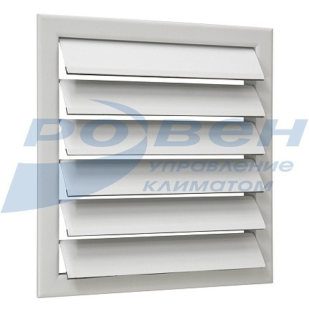 Решетки изготовлены из алюминиевого профиля в виде рамки с горизонтально расположенными жалюзи, которые закреплены подвижно и под воздействием потока воздуха отклоняются.